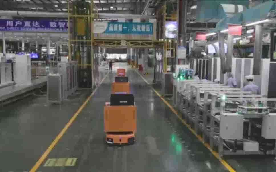 为车载冰箱物流配送打造的智能解决方案,,,,包含产中物流通过潜伏举升AMR搬运至线边,,,产后成品物流智能仓储,,流程包含产中物流智能齐套入库,,,线边安灯叫料AMR智能配送至线边,,,成品入库、、、、出库,,,,通过无人堆高车机器人,,智能仓储管理替代人工作业管理,,,实现更高存储、、更高效率、、、更具柔性化的解决方案。。。